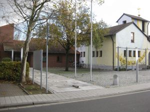 ![]() | Die alten Schulen (nicht mehr vorhanden) Die alten Schulen (heute nicht mehr vorhanden) Die beiden Häuser, die auf diesem Foto rechts der ehemaligen Kirche zu sehen sind, dienten beide einmal als Schule. Das rechte Gebäude wurde um 1800 errichtet. Vorher stand am gleichen Ort die erste Kleinostheimer Schule, die wegen Baufälligkeit 1793/94 abgerissen worden war. Das neue Schulhaus, das auch als Gerichtshaus diente, hatte zwei Unterrichtsräume und zwei Lehrerwohnungen. Auf dem Türsturz des Haupteingangs wurde wurde folgende Inschrift angebracht: „In diesem Hause, das mit dem Geld des Ortes errichtet wurde, wirde den Alten Gerechtigkeit gegeben, den Jungen Weisheit.“ Als die Schülerzahl stieg, wurden 1871 – 73 zwei alte Gebäude zwischen der Schule und der Kirche von der Gemeinde gekauft und abgerissen und an ihrer Stelle ein neues Schulgebäude erbaut, das nach dem zweiten Weltkrieg noch als „Alte Schule“ bekannt war und nach der Zerstörung der „Neuen Schule“ 1945 wieder zeitweise für den Unterricht genutzt wurde. Hier wurde dann ein Lebensmittelgeschäft eingerichtet. Das vorherige Schulgebäude (Foto: rechtes Haus) wurde zum Rathaus, nach 1954 befand sich hier unter anderem die Post. Im Februar 1995 wurden beide Häuser abgerissen und ein Bankgebäude für die Raiffeisenbank Kleinostheim errichtet. ![]() |
